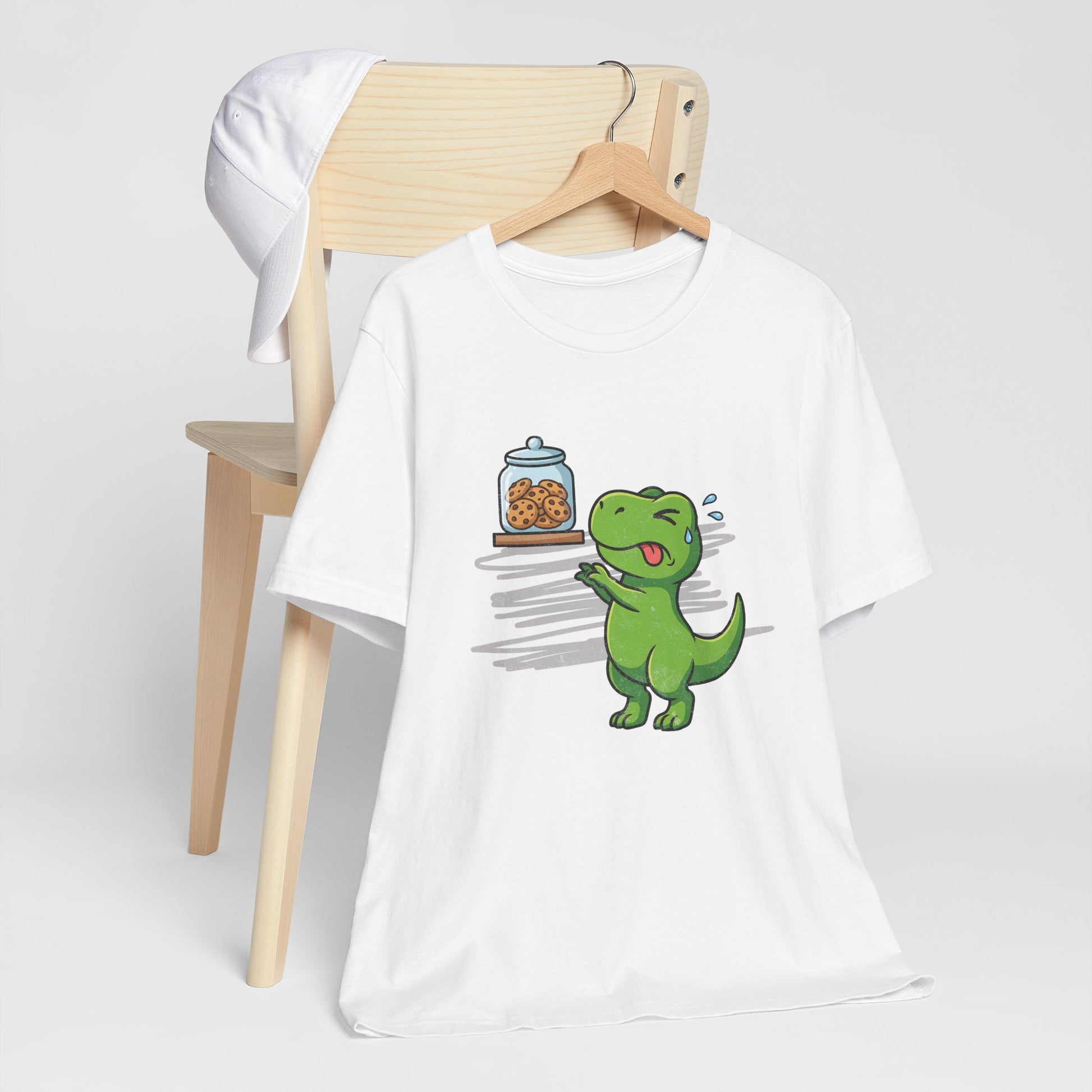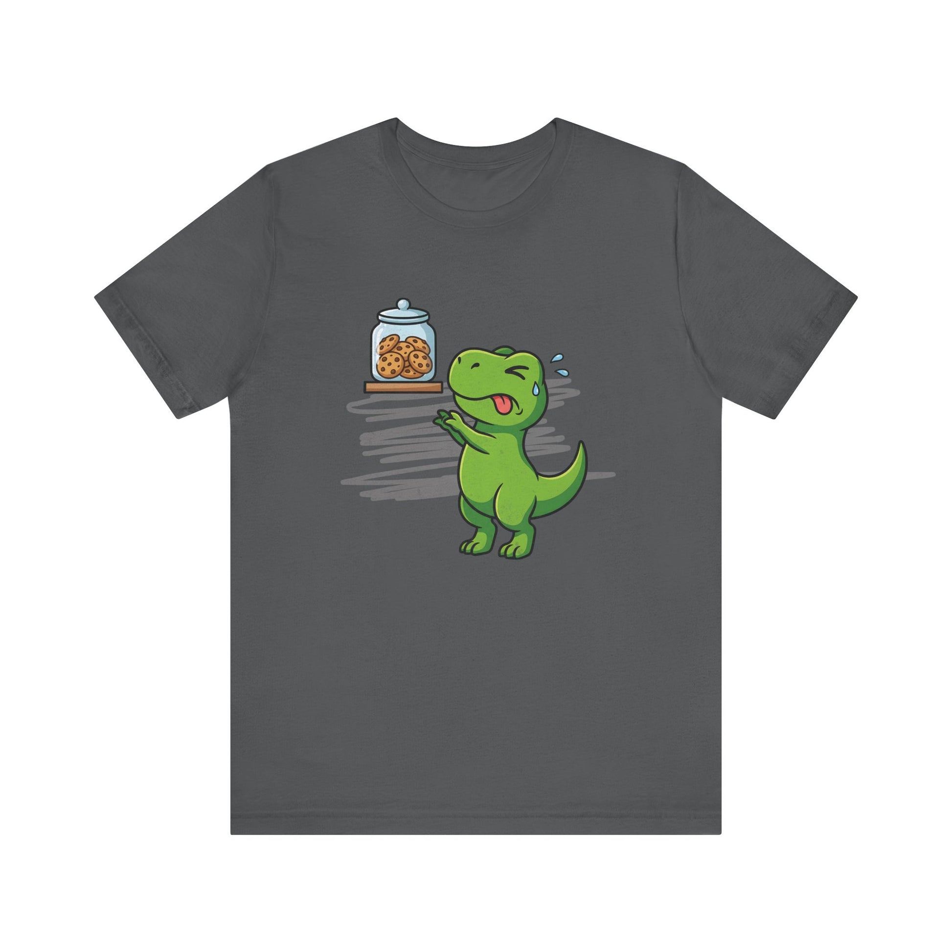 The struggle is prehistoric! This funny T-Rex design captures the agony of short arms and big cookie cravings. Perfect for dinosaur lovers with a sweet tooth.