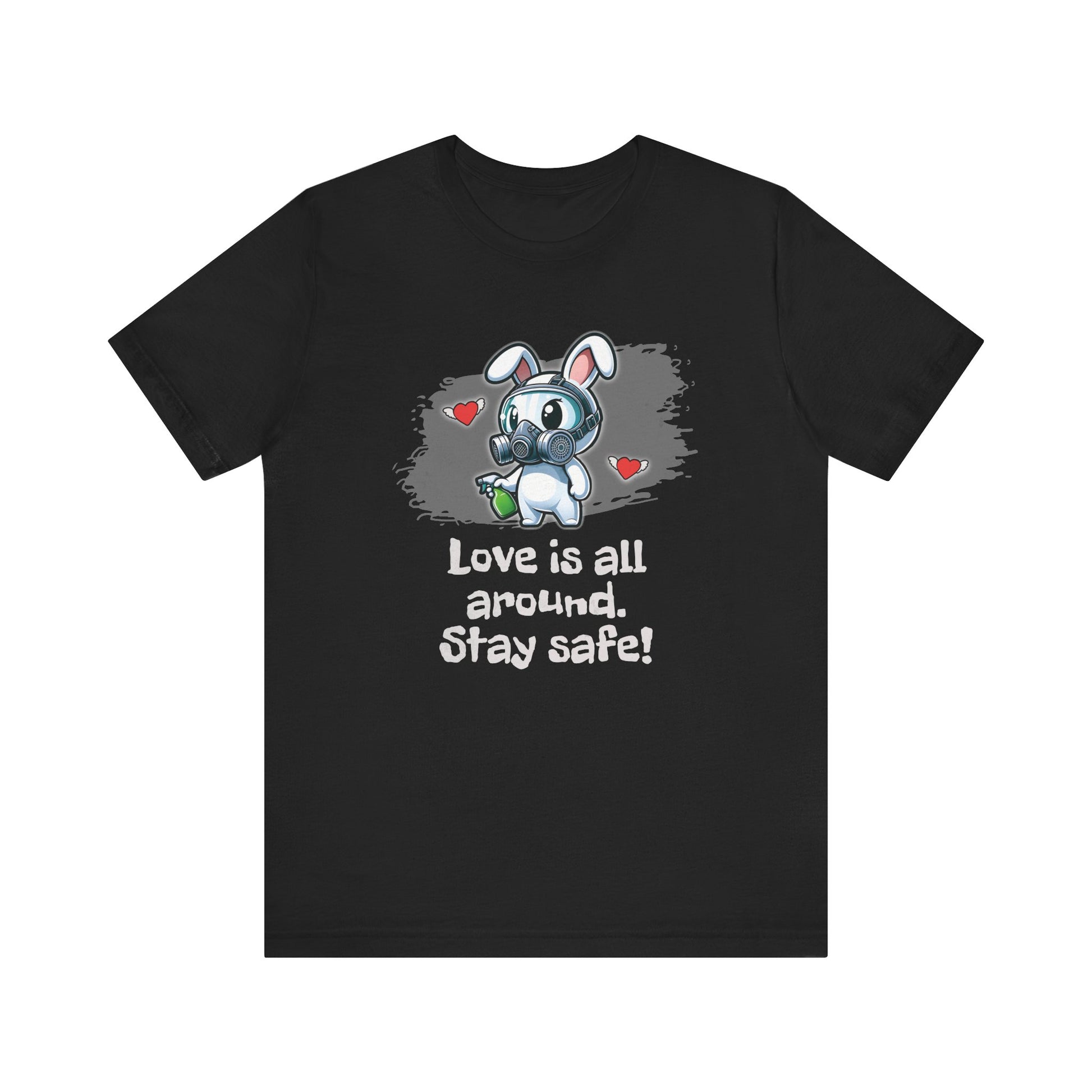 Love is literally a biohazard! This bunny’s ready to fumigate Cupid’s chaos with a gas mask and spray bottle. Perfect for romance skeptics and chaos enthusiasts.